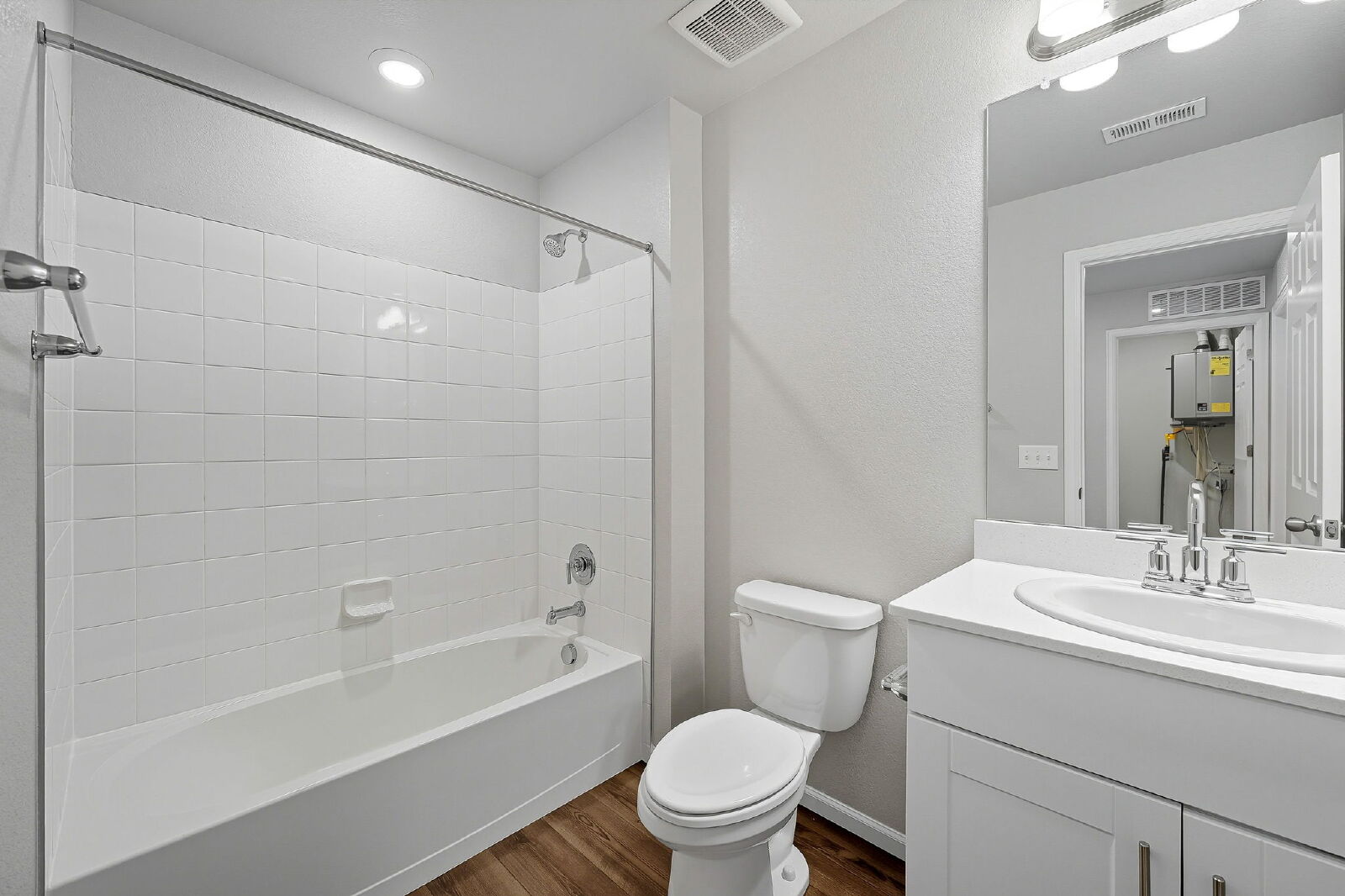 Enjoy year-round comfort with forced-air heating, central A/C, and an energy-efficient tankless water heater, while the attached two-car garage provides generous storage. Natural light pours through every room, highlighting the home’s clean, modern finishes. Outside, all landscaping is maintained by the HOA... a true maintenance-free bonus!